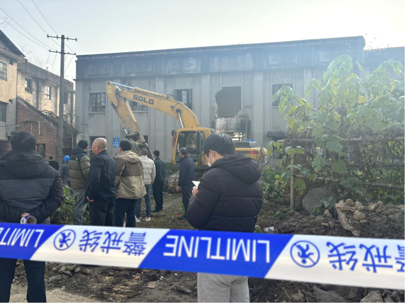 12月18日上午,马迹塘镇资沂路机器轰鸣,马迹塘镇人民政府正在组织拆除马迹塘镇原卫生院大楼,现场人群共同见证拥有50多年历史的原镇卫生院门诊楼光荣退出历史舞台。
