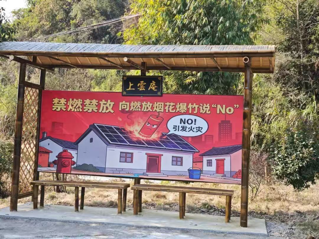 除了便民实用,站台更被赋予了政策宣传功能。宣传栏以“禁燃禁放 向燃放烟花爆竹说‘No’”为主题,采用色彩鲜明、生动易懂的卡通漫画形式,直观展示燃放烟花爆竹对空气、安宁等方面的影响,让严肃的公共政策以更亲切直观的方式抵达群众身边。高桥镇政府工作人员高阳说,公交站台人流量大,信息传播效果好。她们把政策宣传融入日常基础设施,让村民在等车的碎片化时间里就能接收到重要信息,潜移默化地提高认识。