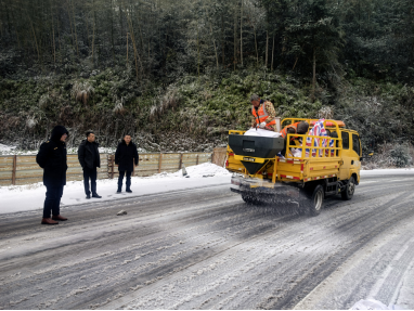 1月19日夜间,雨雪初至,镇应急办迅速联合派出所、交警中队,奔赴G207、S205易结冰路段,设置“路面结冰 减速慢行”等警示牌50余块,夜间轮流值守巡查,实时疏导过往车辆、排查道路风险。随着雨雪持续,路面结冰风险加剧,镇应急委员会组织各成员单位加大巡查频次,在国道、村主干道上抛洒工业盐、增补警示标识,有效遏制冰层蔓延。各村(社区)积极响应,广泛动员,掀起扫雪除冰热潮。罗家坪村、景致村等村党组织和联村干部牵头,组织党员志愿者和村民,手持铁锹、扫帚在村道、国道衔接处集中清扫路面积雪积冰,保障群众出行安全与车辆通行顺畅。