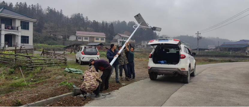 这份光亮来自乡友夏旦军的慷慨捐赠,同时也凝聚着全村人的汗水——从挖坑、立杆到接线、调试,没有请过一名工人,全部由村民义务投工投劳完成。
