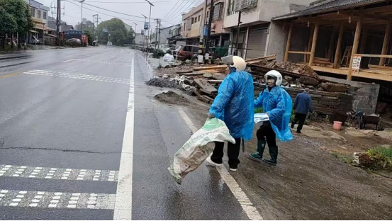 队员们分散在国道两侧,有的蹲在路基边,用捡拾夹把藏在排水沟里的塑料袋、烟头、枯枝落叶一一夹进垃圾袋;有的提着半满的袋子,踩着积水往回收点走。雨水顺着雨衣帽檐滴落,打湿了裤脚,寒风把雨衣吹得鼓鼓作响,可大妈们的动作丝毫没有放慢。