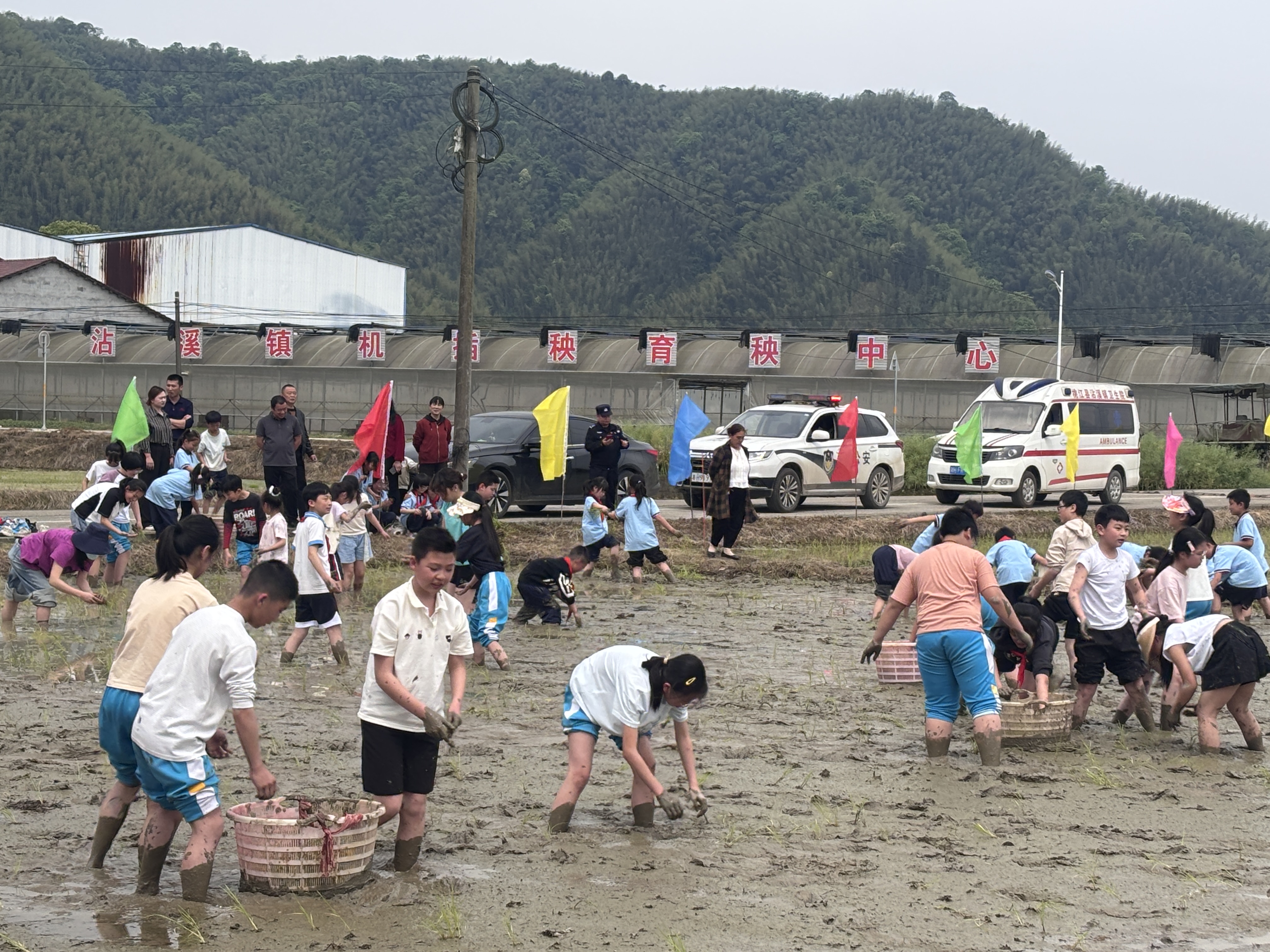 这堂别开生面的“农耕课”,由沾溪村村民委员会联合桃花江小学、贺家坪小学共同开展,来自两所小学近90名学生卷起裤腿、踏入水田,在泥泞中体验春耕乐趣,在实践中感受农耕艰辛。