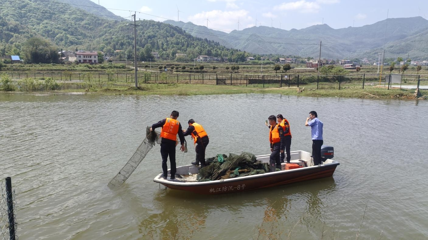 行动当日共出动12名执法人员,集中收缴地笼42条、渔网8副,共收缴并放生非法渔获4.5公斤。
