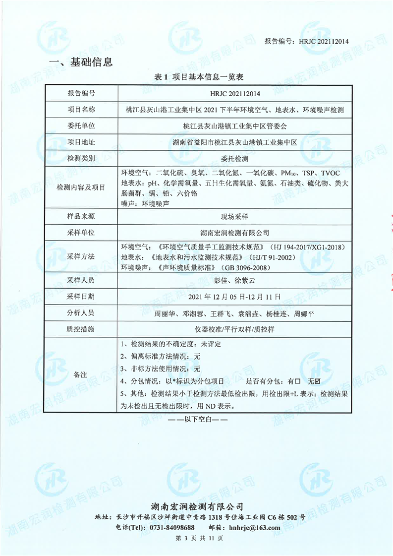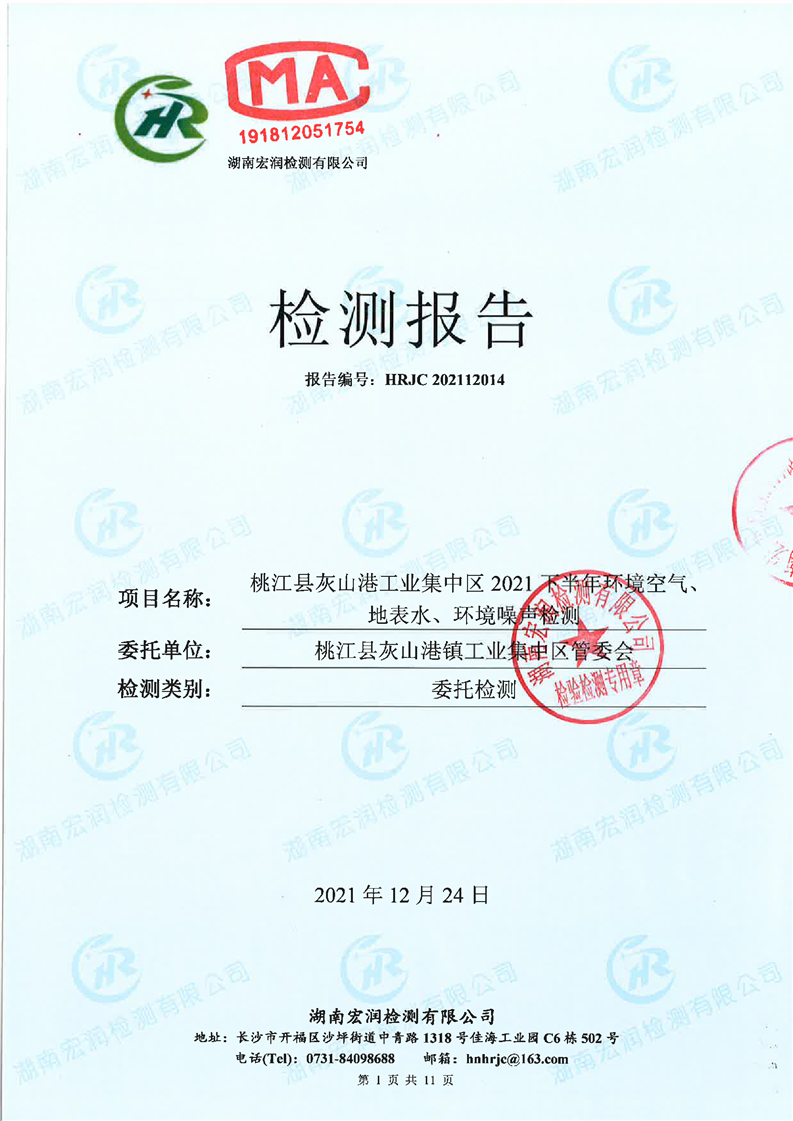 桃江县灰山港工业集中区2021下半年环境空气、地表水、环境噪声检测报告