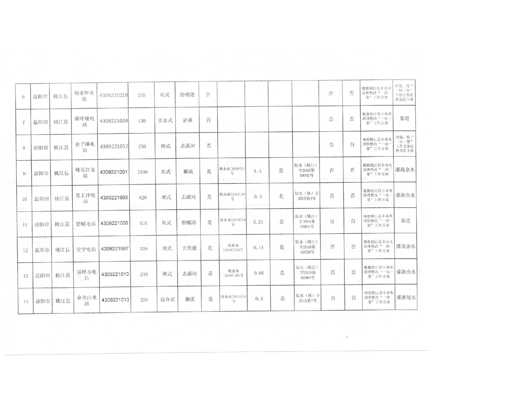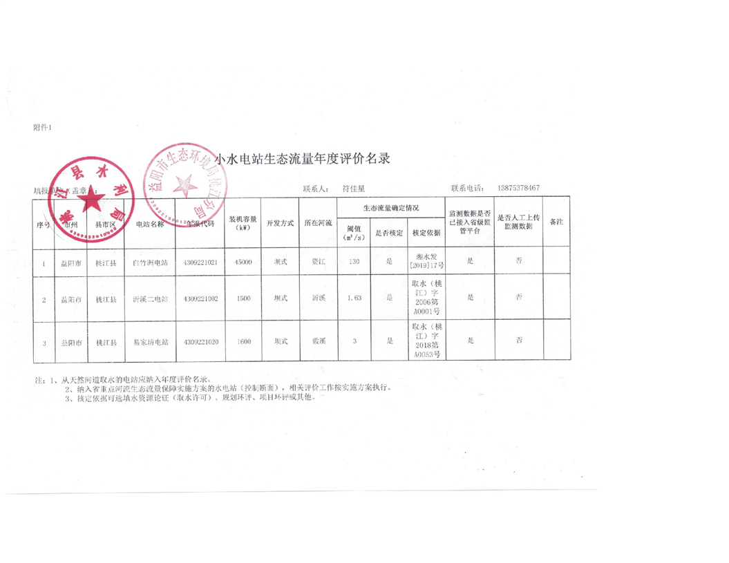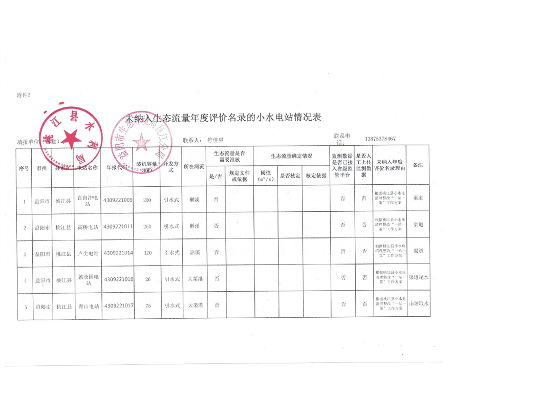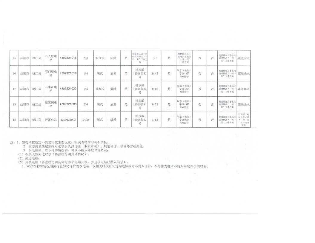 2022年度桃水、环保小水电生态流量年度评价名录
