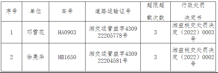 桃江县交通运输局关于吊销严重超限超载营运车辆道路运输证的公告