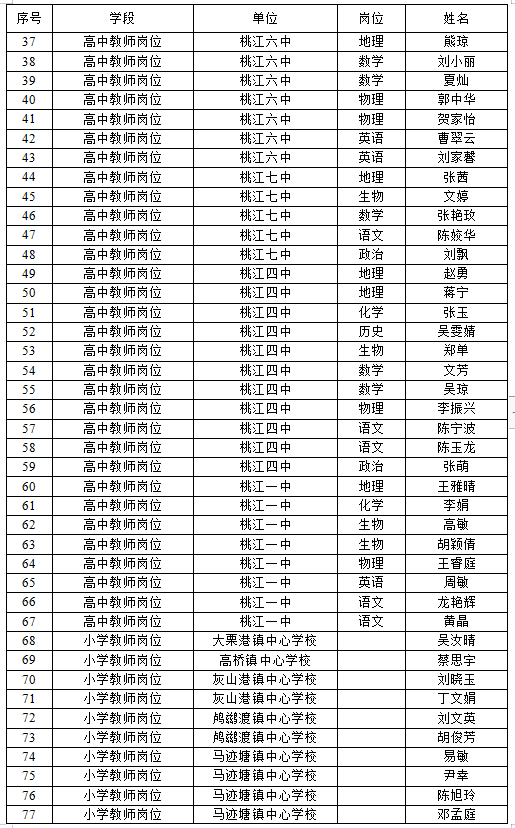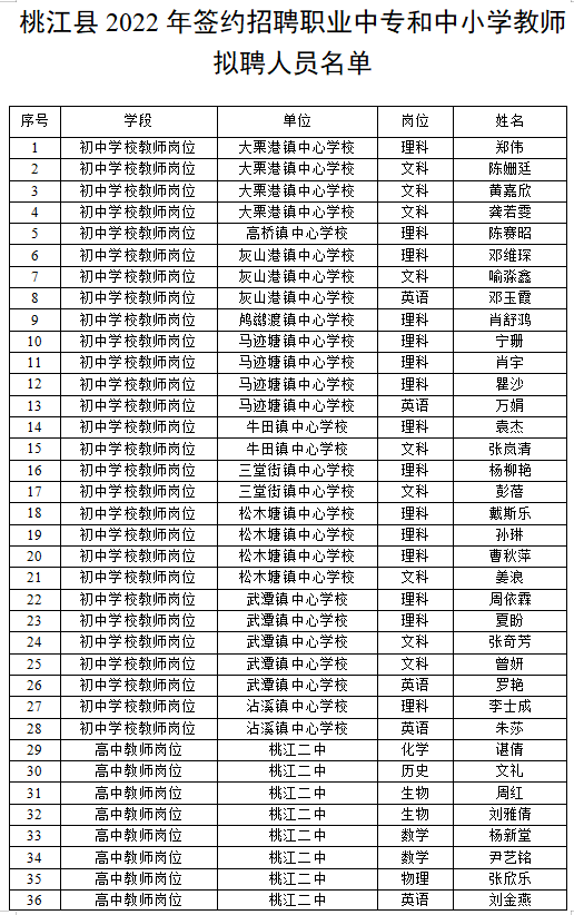 桃江县2022年签约招聘职业中专和中小学教师拟聘人员公示