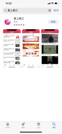 2、进入Apple Store(苹果)、Android(安卓)等应用市场。搜索《掌上桃江》免费下载。