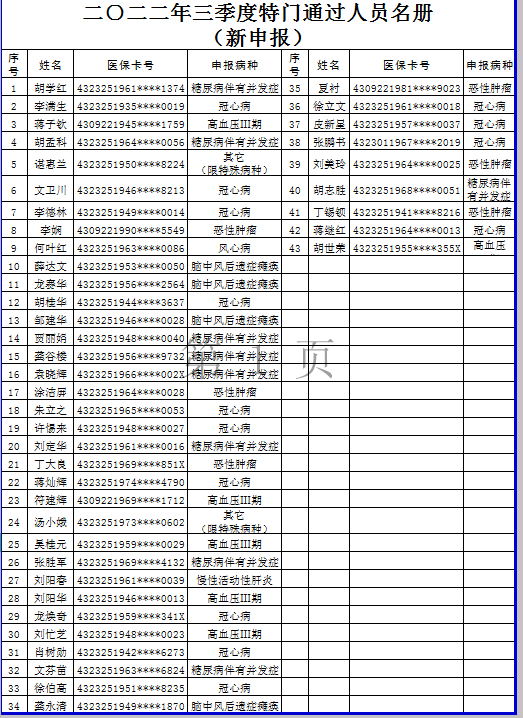 附表:二〇二二年三季度申办特殊门诊符合人员名单
