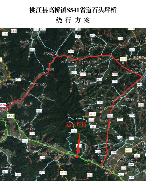 2.鸬鹚渡往高桥方向行进车辆途经该路段请从国道G536-乡道Y508绕行,高桥往鸬鹚渡方向行进车辆途经该路段请从乡道Y508-国道G536绕行。