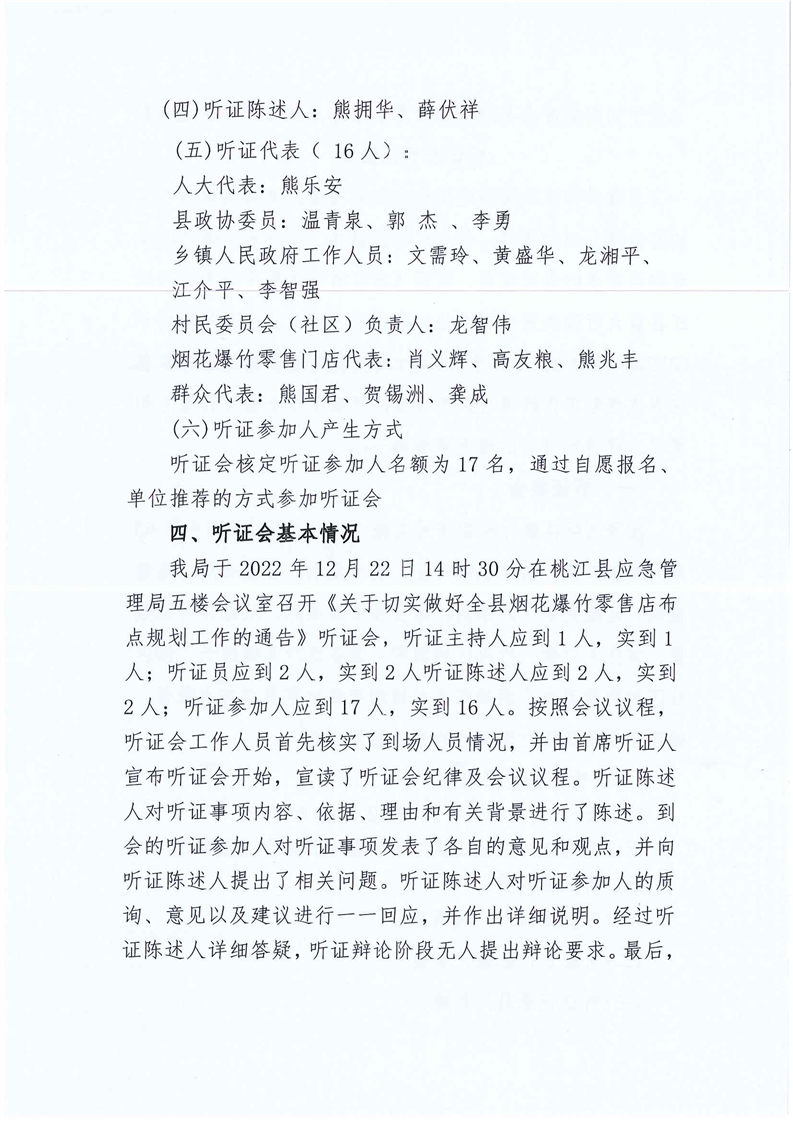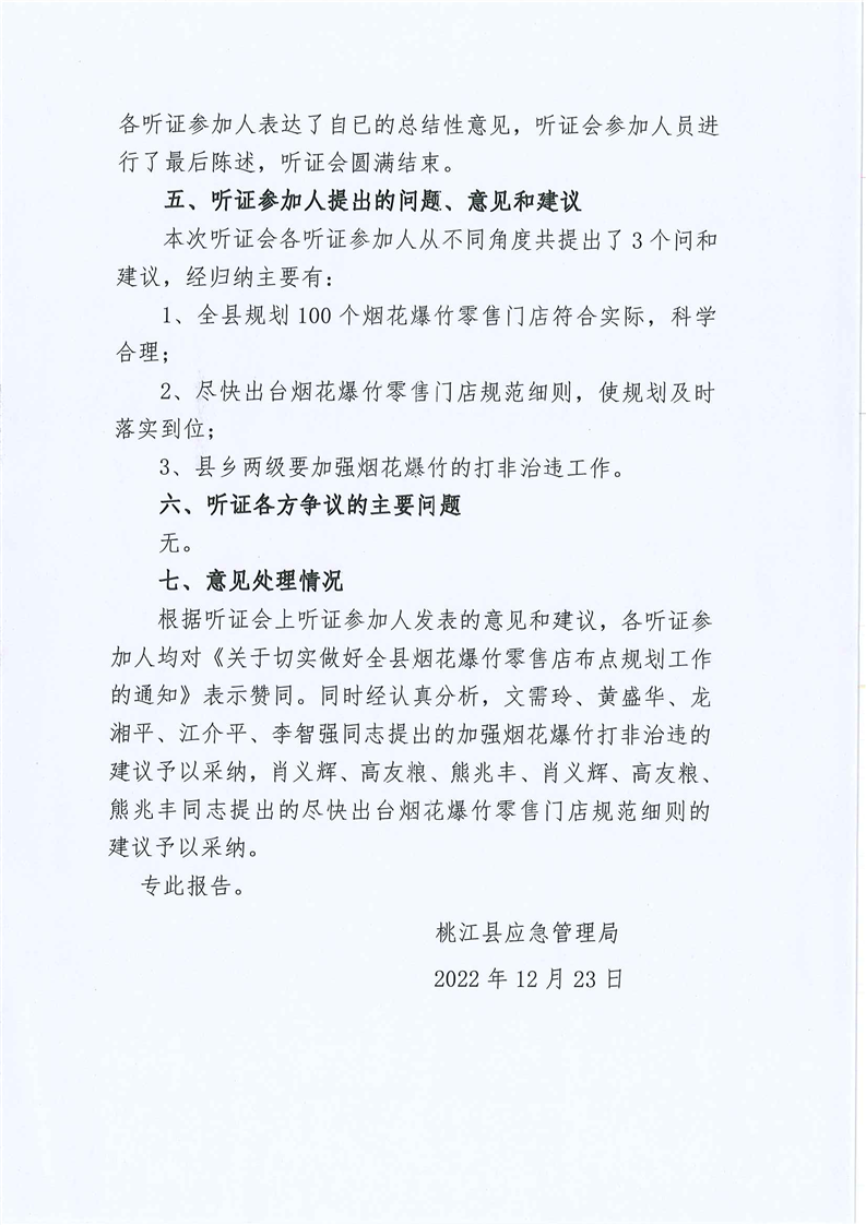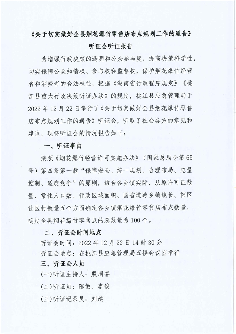 《关于切实做好全县烟花爆竹零售店布点规划工作的通告》听证会听证报告