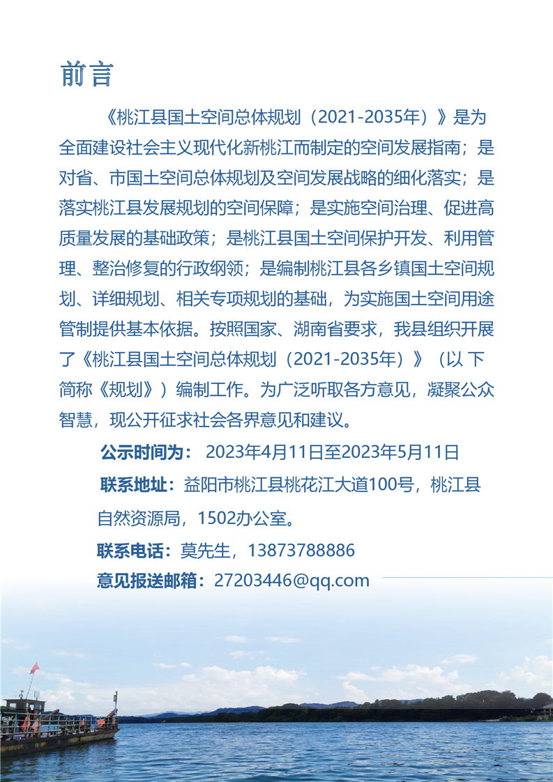 关于对《桃江县国土空间总体规划(2021-2035)》的批前公示