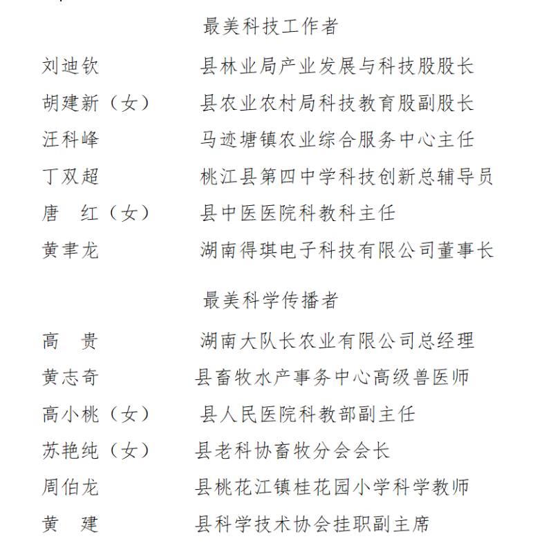 2023年桃江县“最美科技工作者”“最美科学传播者”名单