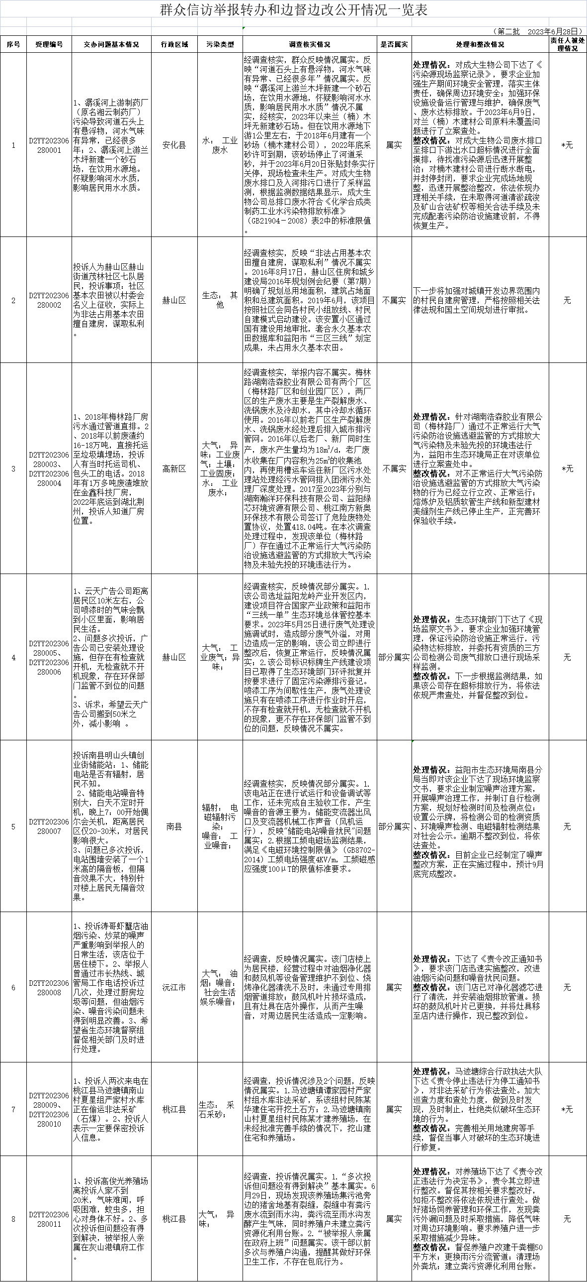 群众信访举报转办和边督边改公开情况一览表(第二批)