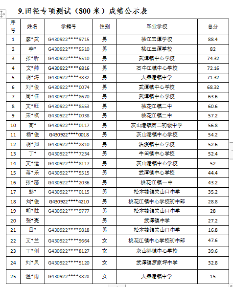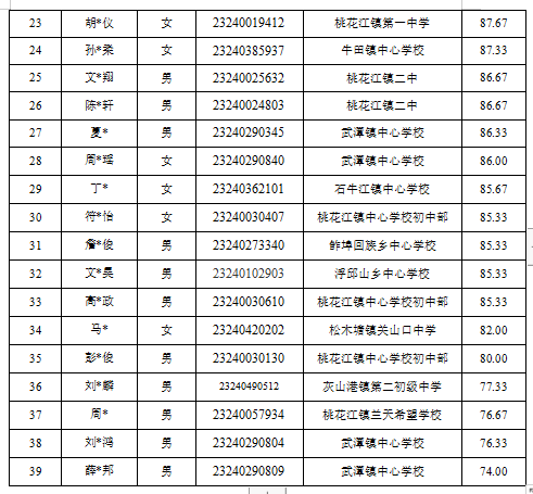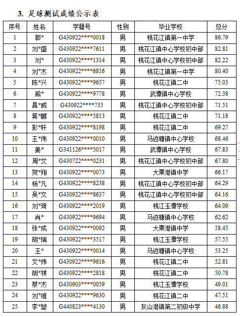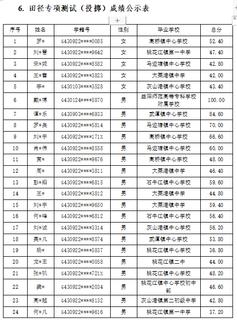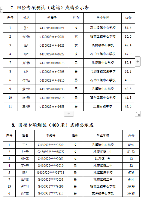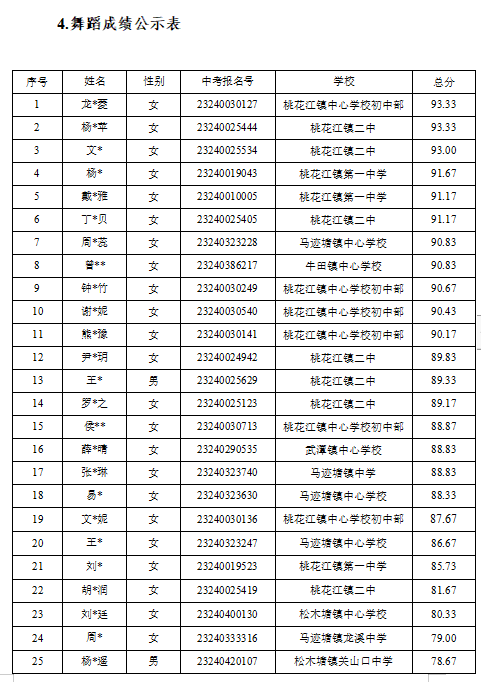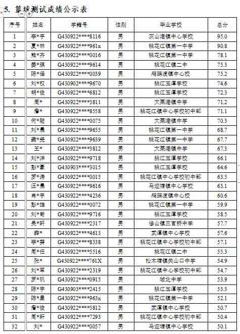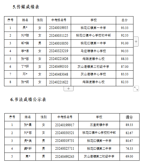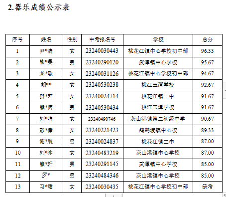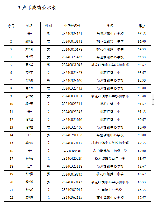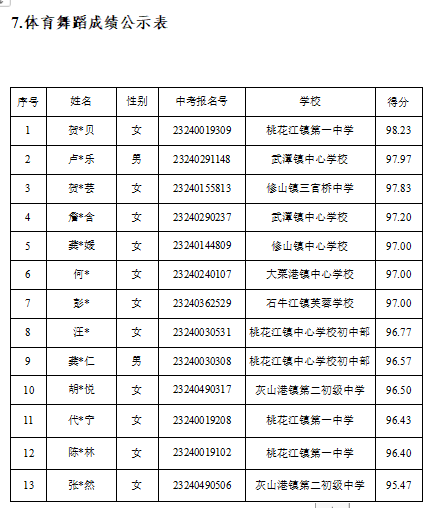 关于桃江县2023年高中特长生招生考试成绩的公示