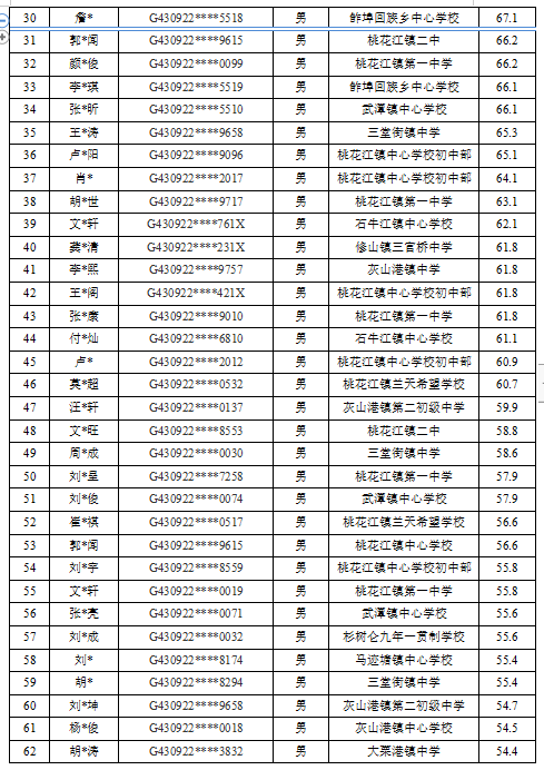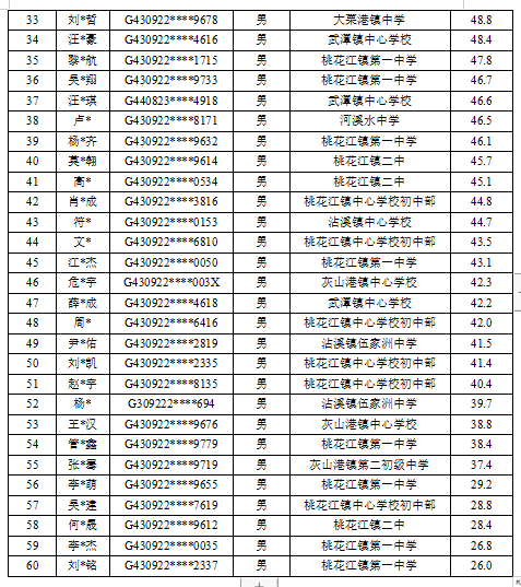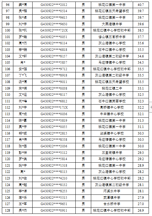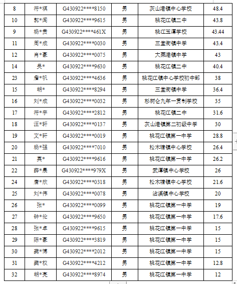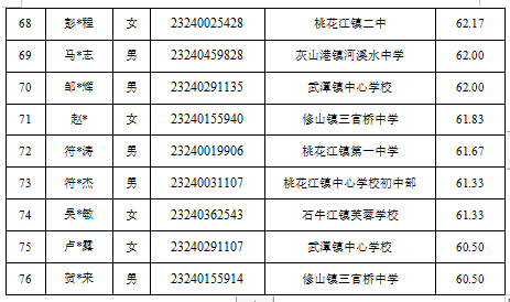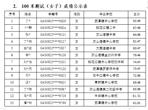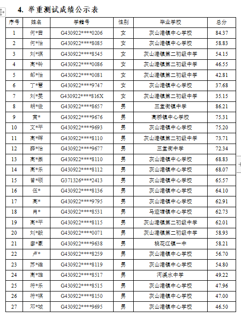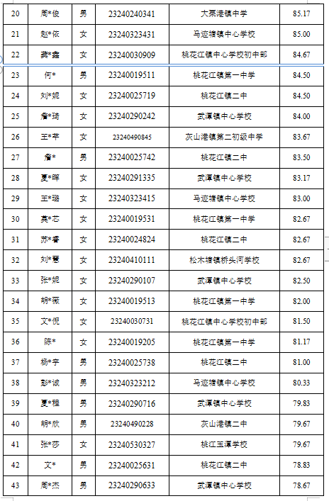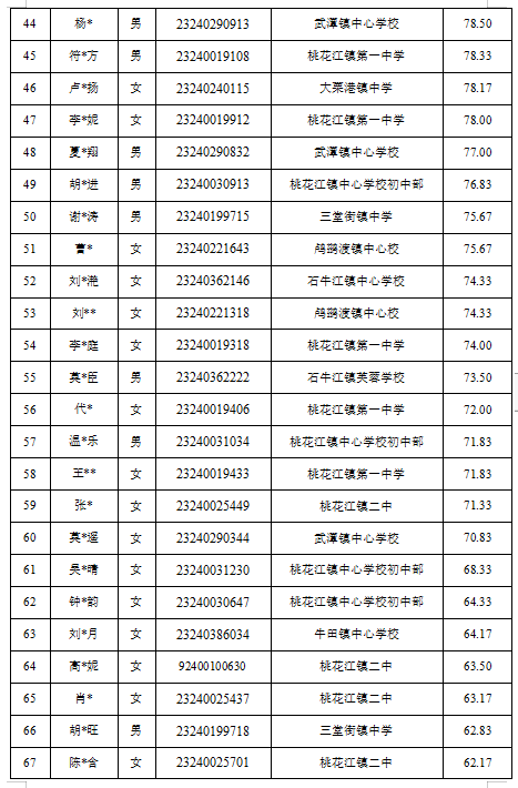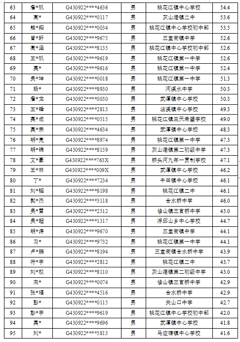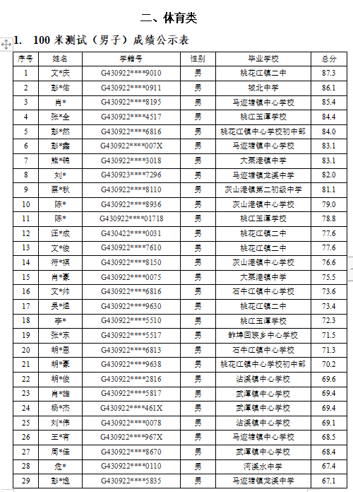 关于桃江县2023年高中特长生招生考试成绩的公示
