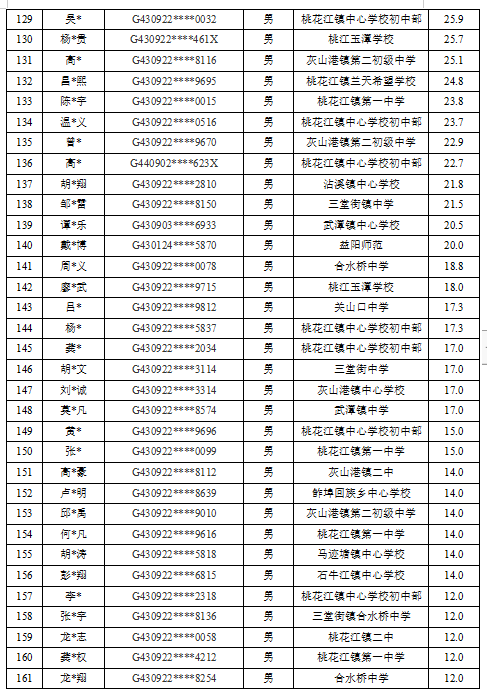 7月1日,我局发布《关于桃江县2023年高中特长生招生考试成绩的公示》。因统计失误,造成所公示的田径类考生800米成绩有误。现对7月1日所发布的公示宣布作废,并对勘误后的2023年高中特长生招生考试成绩予以重新公示(名单及成绩附后)。公示日期:2023年7月5日至7月9日。咨询电话0737-2659628,纪检监察电话:0737-2659620。
