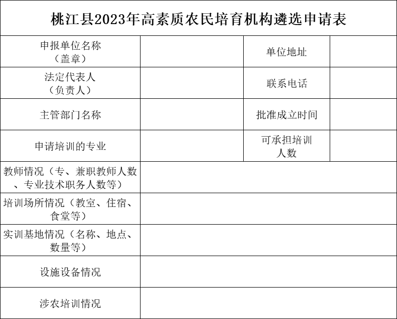 附件1:桃江县2023年高素质农民培育机构遴选申请表