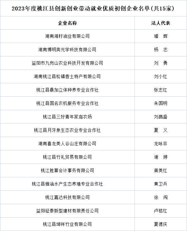 2023年度桃江县优质初创企业评审结果和大学生创新创业资助名单公示