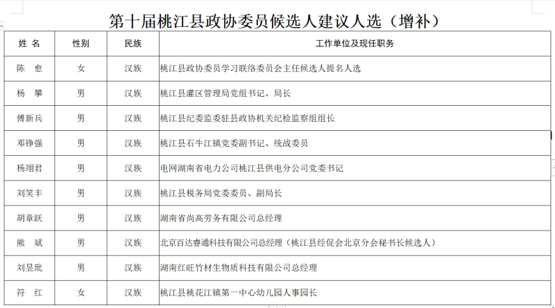第十届桃江县政协委员候选人建议人选(增补)公示