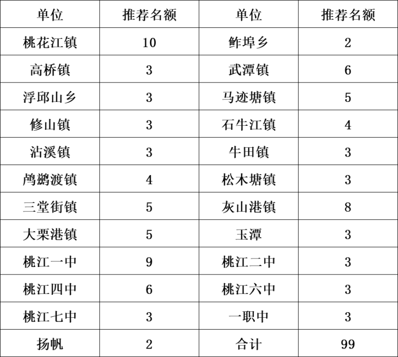 1.推荐资助名额。2024年新增约90名资助学生,义务教育阶段学生60人,高中阶段30人,各单位推荐人数如下: