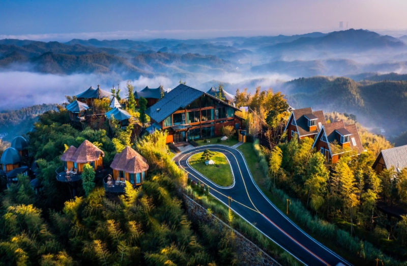 目前,该项目一期已完成核心功能区建设,包括:1栋综合接待中心(含前台服务、特色餐厅及餐饮包间)、1栋帐下会议厅、1栋帐下咖啡厅,以及25栋主题竹屋客房。客房体系涵盖尊享套房、豪华套房、亲子套间等多元房型,共计34个高端床位,构建起集住宿、餐饮、会务、休闲于一体的轻奢度假服务体系,为二期开发奠定坚实的运营基础。