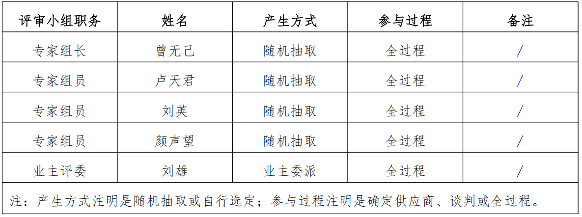 五、评审小组成员名单