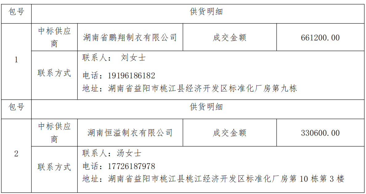 桃江县职业中专学校2025级新生校服采购项目公开招标中标公告项目于2026年2月12日结束,现将成交结果公告如下: