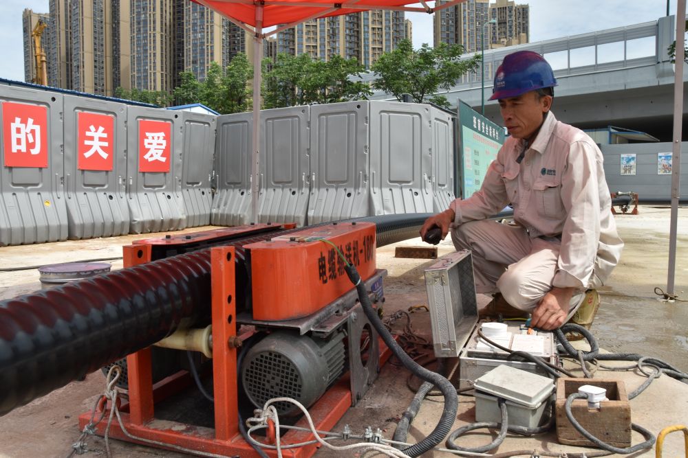 电缆铺设进入最后冲刺期,湖南送变电工程有限公司电缆施工分公司项目经理邓井章更加忙碌。邓井章说,电力隧道的施工环境复杂、工期紧,工人们加班加点作业,以确保这条电力隧道能在迎峰度夏中派上用场。