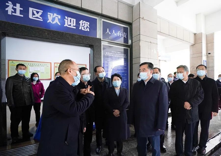 ▲ 3月22日,湖南省委书记、省人大常委会主任张庆伟在长沙东屯渡街道嘉雨社区星城世家小区检查指导疫情防控工作。