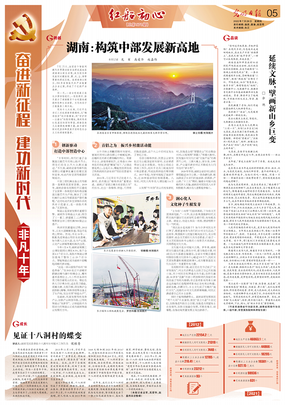 从发展“外向型”农业的桂东新坑村,到推进全程“智慧农业”的岳阳金兴村;从短视频“弄潮儿”常德大胜村,到发掘乡村文化打造“文旅产品”的湘西竹山村。三湘大地上,家乡美、乡味浓、产业富的新农村正不断成为人们向往的“新乡愁”。