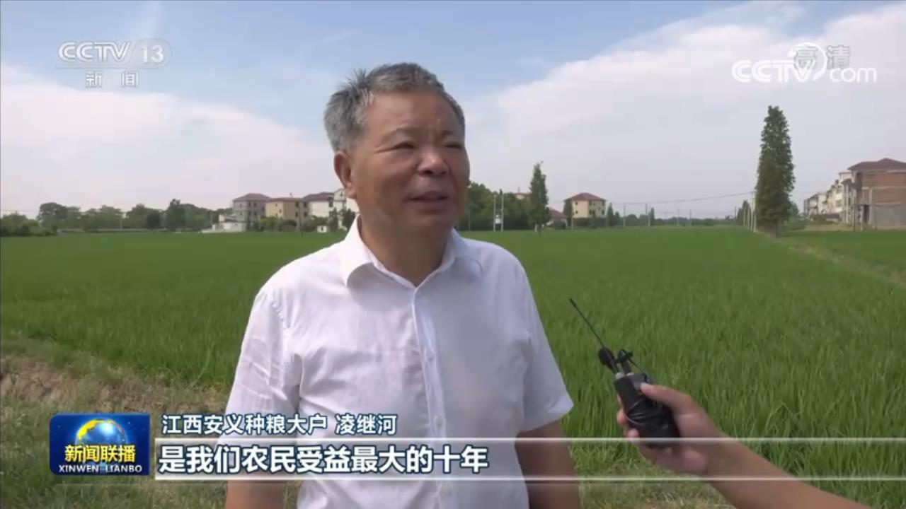 江西安义种粮大户凌继河:过去的十年,有总书记给我们当领路人,是我们农民受益最大的十年,承包田有补贴,买农机有补贴。今年,我们的粮田还是一个丰收年。相信二十大以后,还会出台更多的惠农富民的好政策,我们农民的日子越过越幸福。