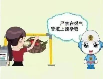 在厨房洗菜做饭时,总有人习惯性地把一些零碎物品和抹布等挂在管道上,这是非常不可取的。燃气管道上悬挂物品,容易造成管道变形、断裂、接口松动等现象,导致漏气。