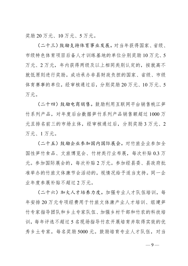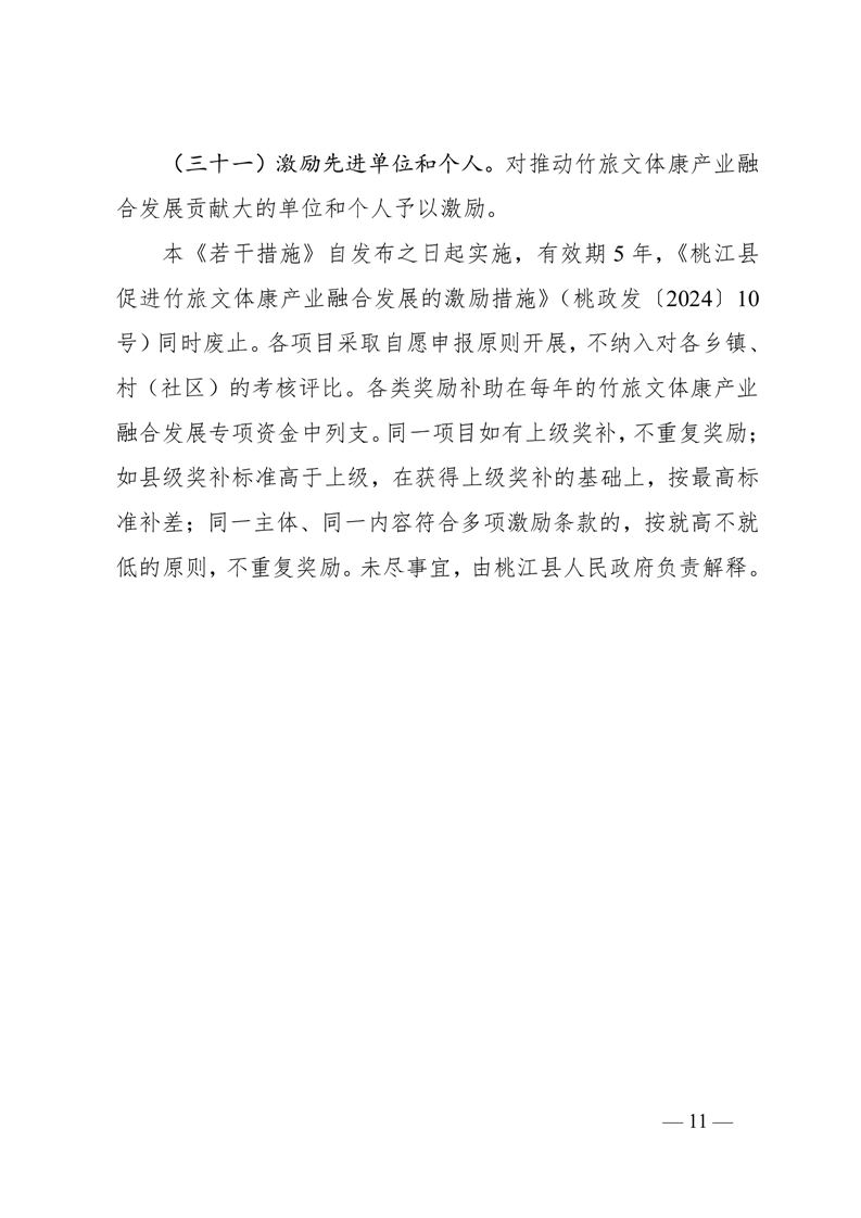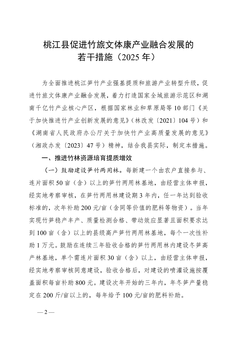 桃江县人民政府关于印发《桃江县促进竹旅文体康产业融合发展的若干措施(2025年)》的通知