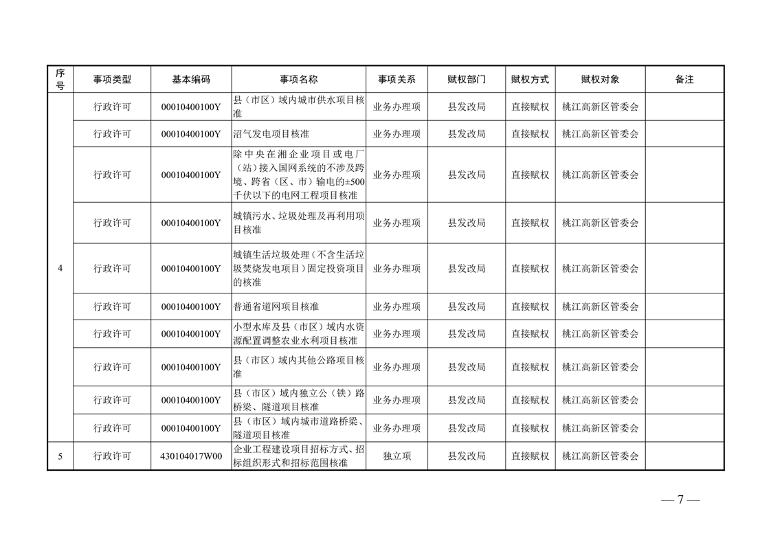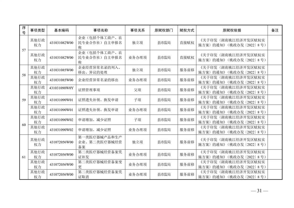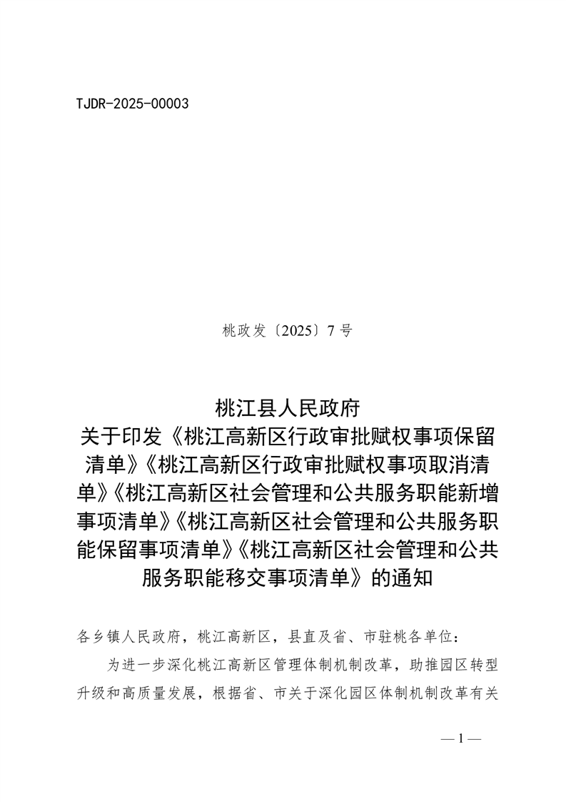 桃江县人民政府 关于印发《桃江高新区行政审批赋权事项保留清单》《桃江高新区行政审批赋权事项取消清单》《桃江高新区社会管理和公共服务职能新增事项清单》《桃江高新区社会管理和公共服务职能保留事项清单》《桃江高新区社会管理和公共服务职能移交事项清单》的通知