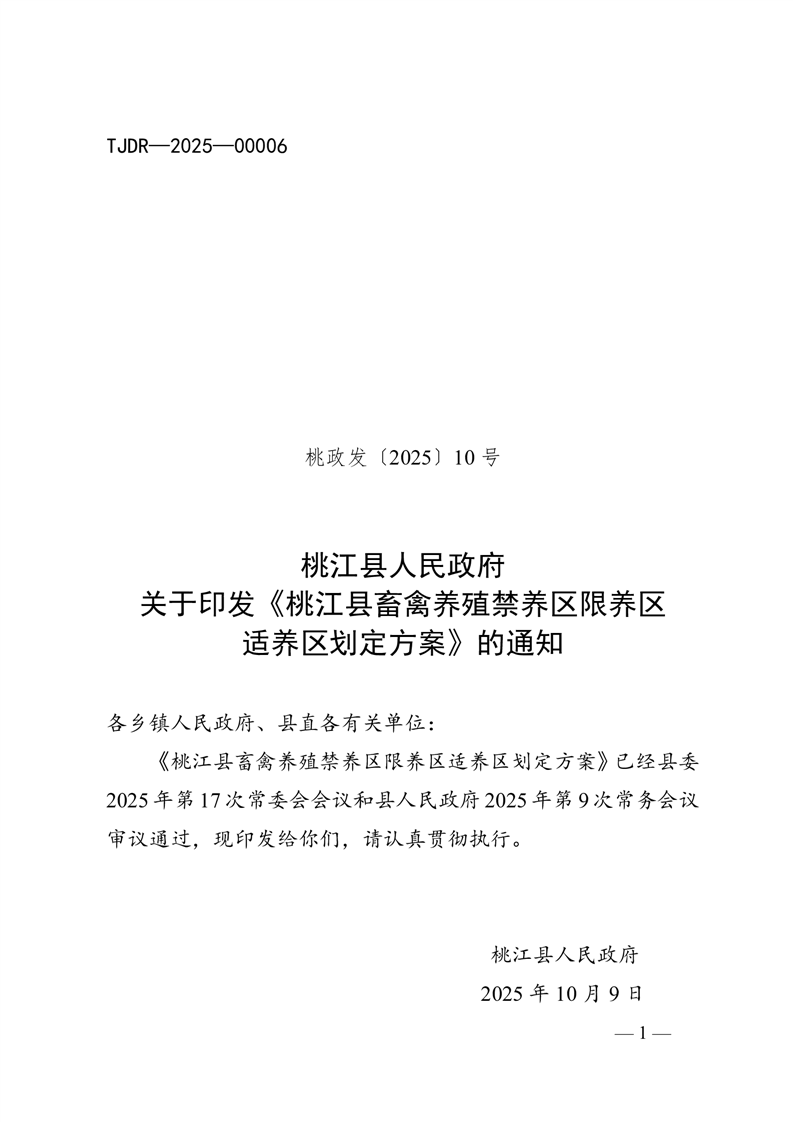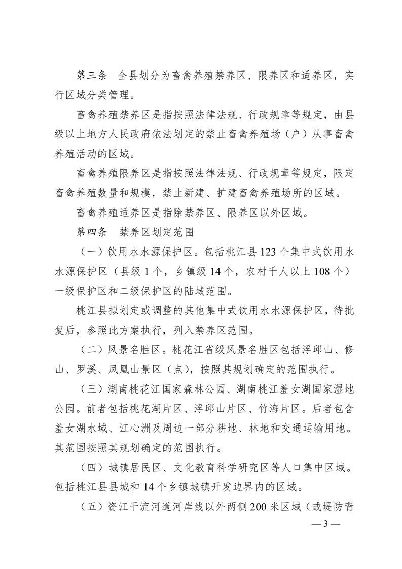 关于印发《桃江县畜禽养殖禁养区限养区适养区划定方案》的通知