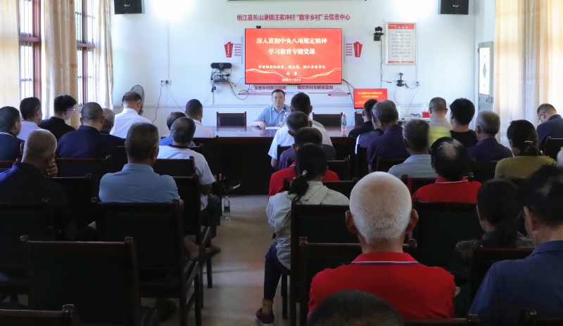 7月4日上午,市政协副主席、县委书记向荣前往联点村灰山港镇汪家冲村,为全村在家党员讲授深入贯彻中央八项规定精神学习教育专题党课。