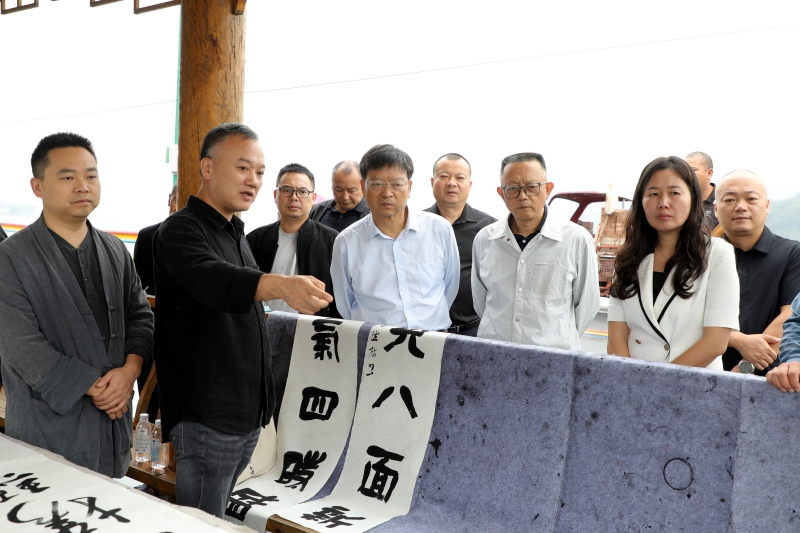 随后,委员们实地调研了羞女湖国家湿地公园,深入考察景区规划建设、业态布局现状及未来发展需求。来自县书法家协会、天问诗社、县楹联协会的文艺志愿者聚焦本地山水文化、诗词典故、传说特产等特色元素,即兴创作了60余幅诗词楹联书法作品。省级非物质文化遗产——舞凤山石砚传承人现场展示了精湛的刻字艺术。一系列主题鲜明、笔墨酣畅的文艺作品,吸引了众多游客驻足欣赏。