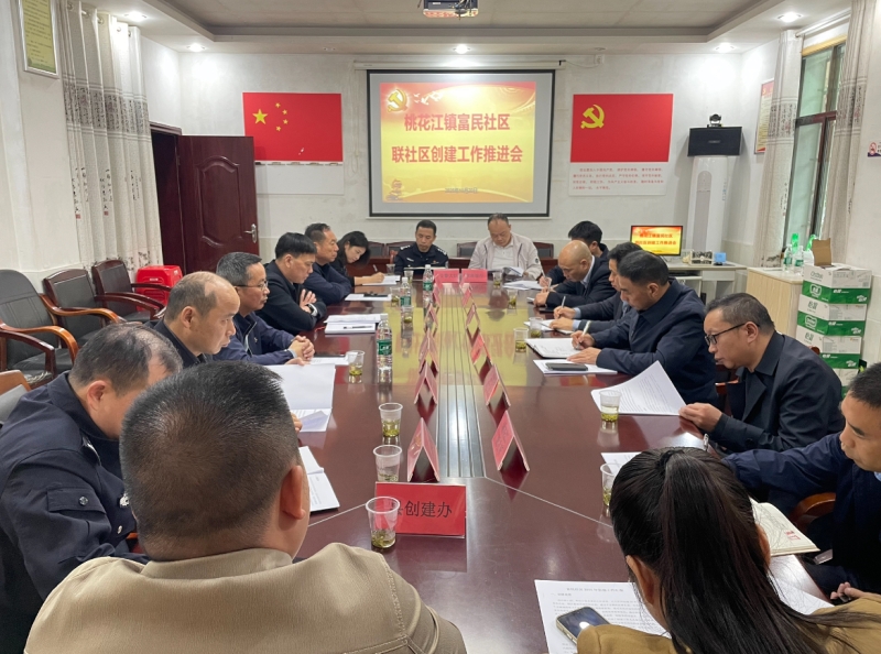 富民社区负责人就2025年的创建工作情况作简要汇报。县创建办、桃花江镇相关负责人就如何进一步做好创建工作提出意见建议。县委社会工作部、县委政法委、县科工局、县公安局等社区联点单位负责人就各自相关的工作作表态发言。