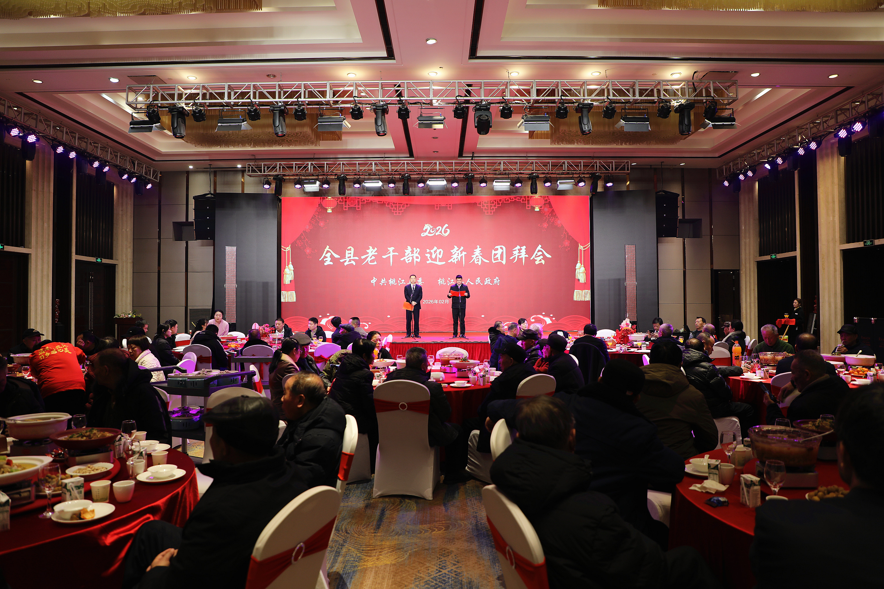2月11日上午,桃江县举行2026年老干部迎新春团拜会。县委书记周登高主持团拜会,县委副书记、县长沈澍通报全县社会经济发展情况。王思婷、伍令贤、杨凯波、于新胜、刘权等县领导参加。