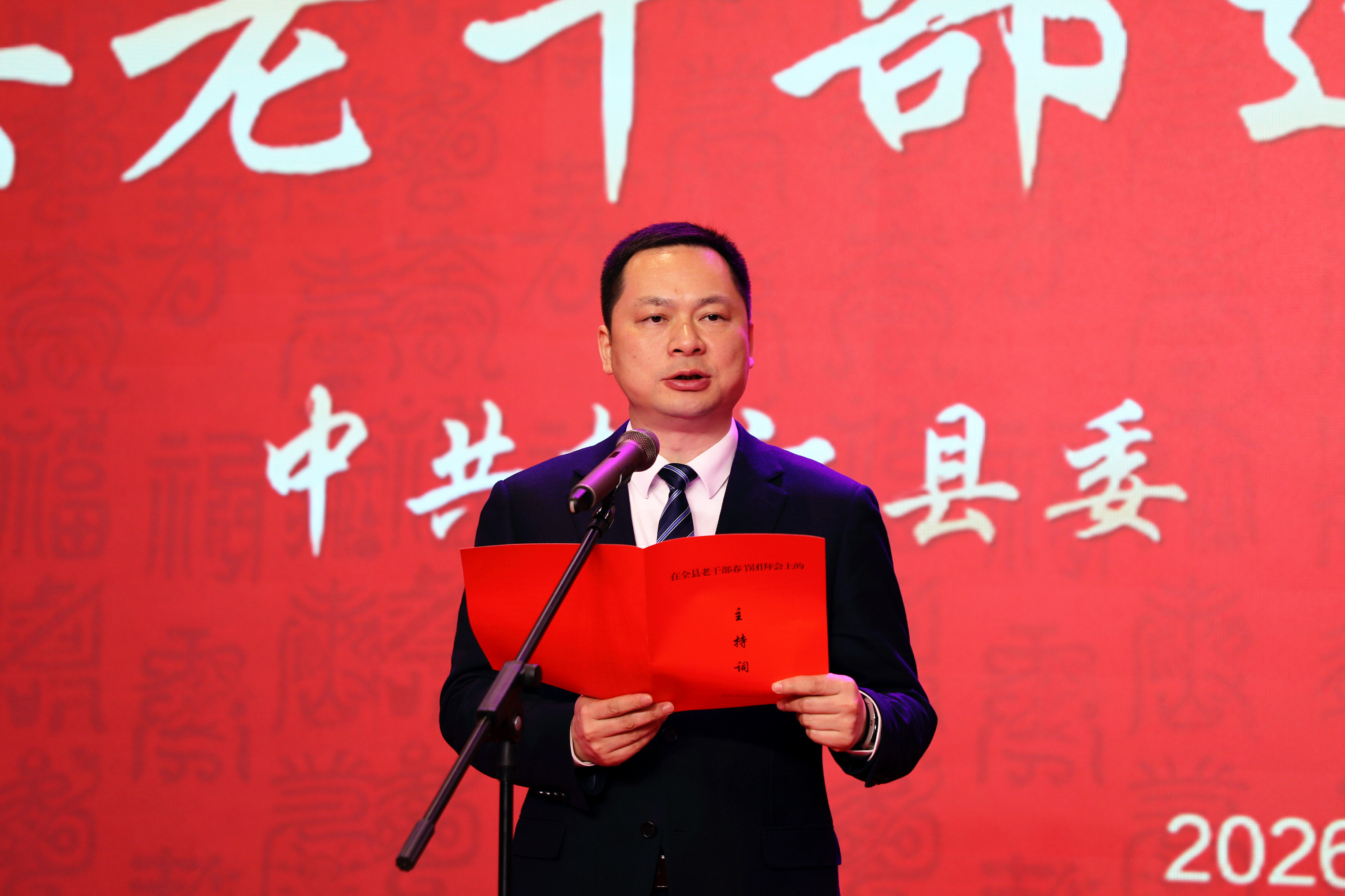 周登高代表县委、县人大、县政府、县政协向全县老干部致以诚挚问候和美好祝福。他指出,过去一年桃江经济社会发展取得显著成效,离不开各位老领导、老前辈的关心支持。新的一年,桃江将紧紧围绕县委“12345”工作思路,扎实推进县政府“六七八九十”工作要点,全力推动竹旅文体康产业融合发展,加快构建“1+1+N”现代化产业体系,持续优化发展环境,奋力推动富饶美丽幸福的现代化新桃江建设迈上新台阶。周登高表示,县委、县政府将一如既往重视老干部工作,认真落实各项待遇,努力为老干部安享晚年、发挥余热创造良好条件,并衷心希望老干部们继续为桃江发展贡献智慧和力量。