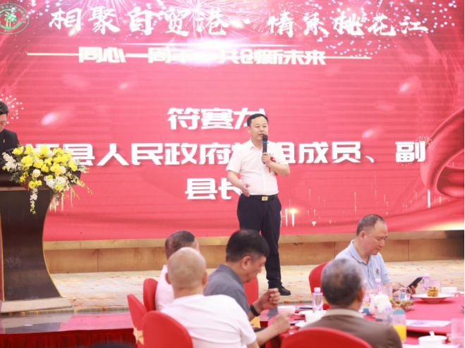 会上,符赛龙代表桃江县向海口市湖南桃江商会、桃江县经促会海口分会成立一周年表示热烈祝贺,并向长期关心支持桃江发展的在琼乡贤、各界朋友表示衷心感谢。他指出,海口市湖南桃江商会、桃江县经促会海南分会成立以来,充分发挥桥梁纽带作用,成为联结海口与桃江、凝聚乡友力量、助力家乡发展的重要平台,各项工作成效显著、特色鲜明。他期盼商会越办越好,广大乡贤事业蒸蒸日上,常回家乡走一走、看一看,一如既往关心、支持、参与桃江建设,携手推动家乡高质量发展迈出更大步伐。