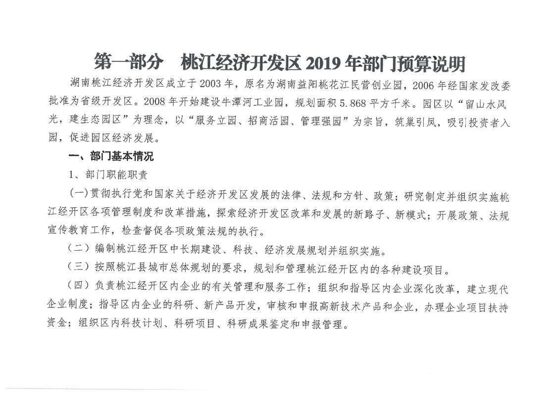 桃江经济开发区2019年度部门预算编制说明及预算公开表