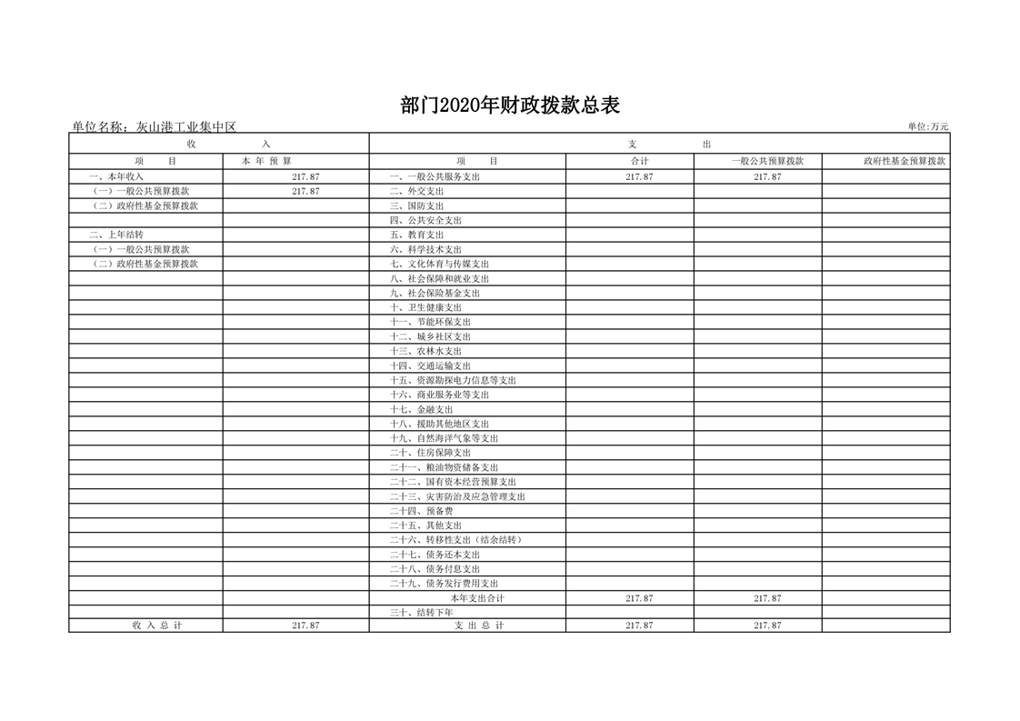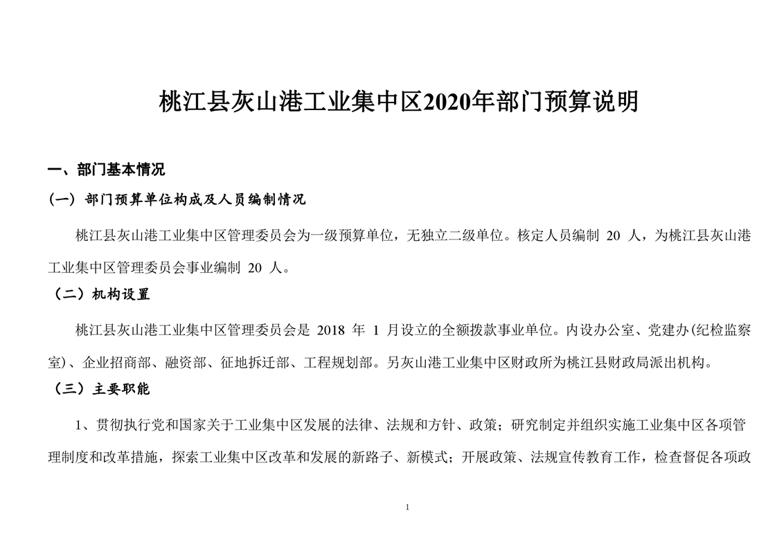 桃江县灰山港工业集中区管理委员会2020年度部门预算公开