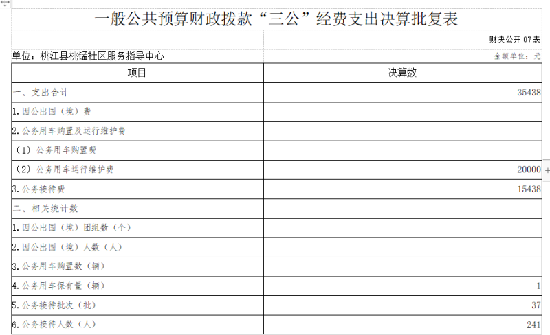 公务接待支出15438元,国内公务接待37批次,接待241人次。接待支出主要用于县各部门来我社区检查指导工作公务用餐。