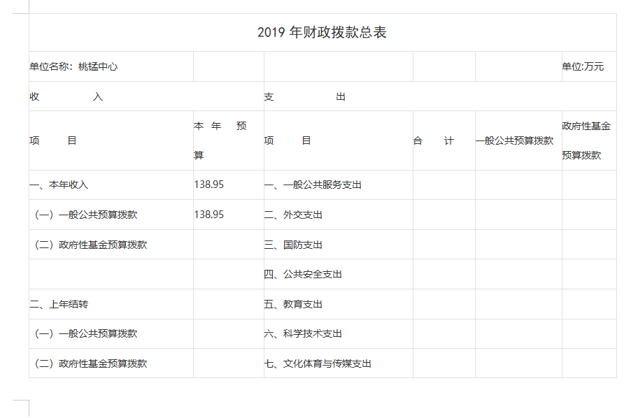 2019年桃江县桃锰社区服务指导中心部门预算编制说明