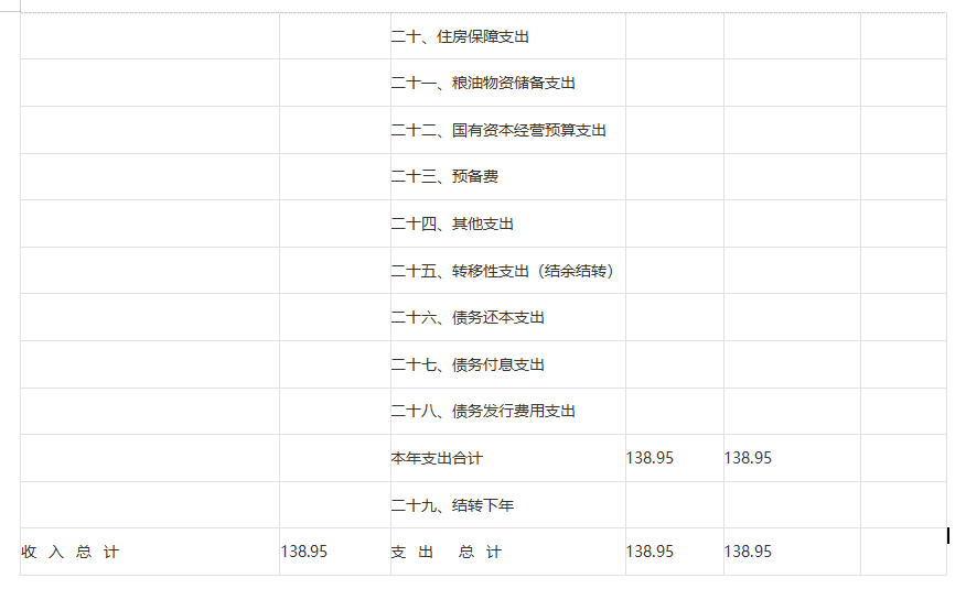 (一)预算收入138.95万元。其中一般公共预算拨款138.95万元,政府性基金拨款0万元,纳入专户管理的非税收入拨款0万元,其他收入拨款0万元。