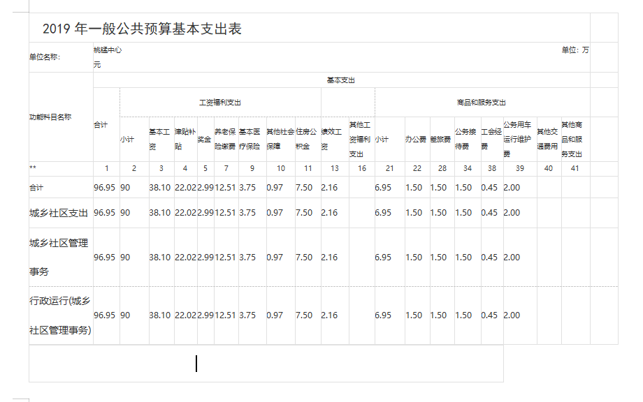 基本支出96.95万元,较201年的93.96增加2.99万元,主要是因为工资调标。政府采购5.90万元较2018年的5.40万元增加0.50万元。