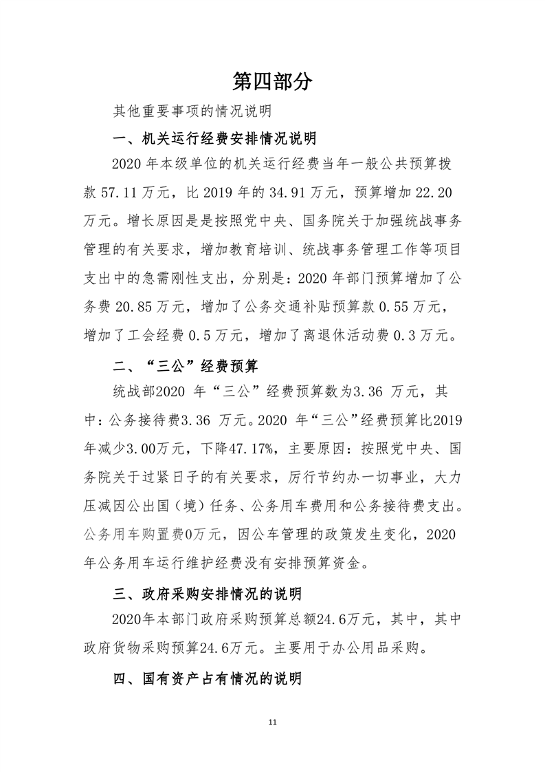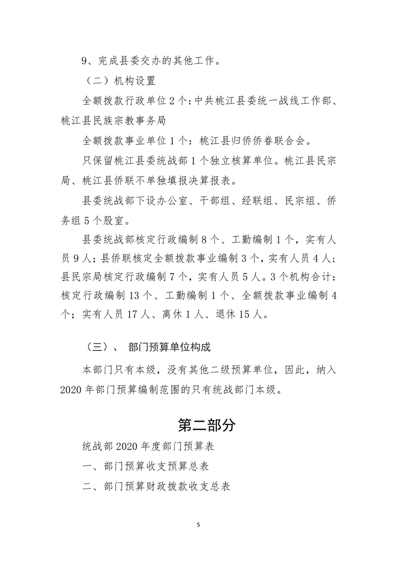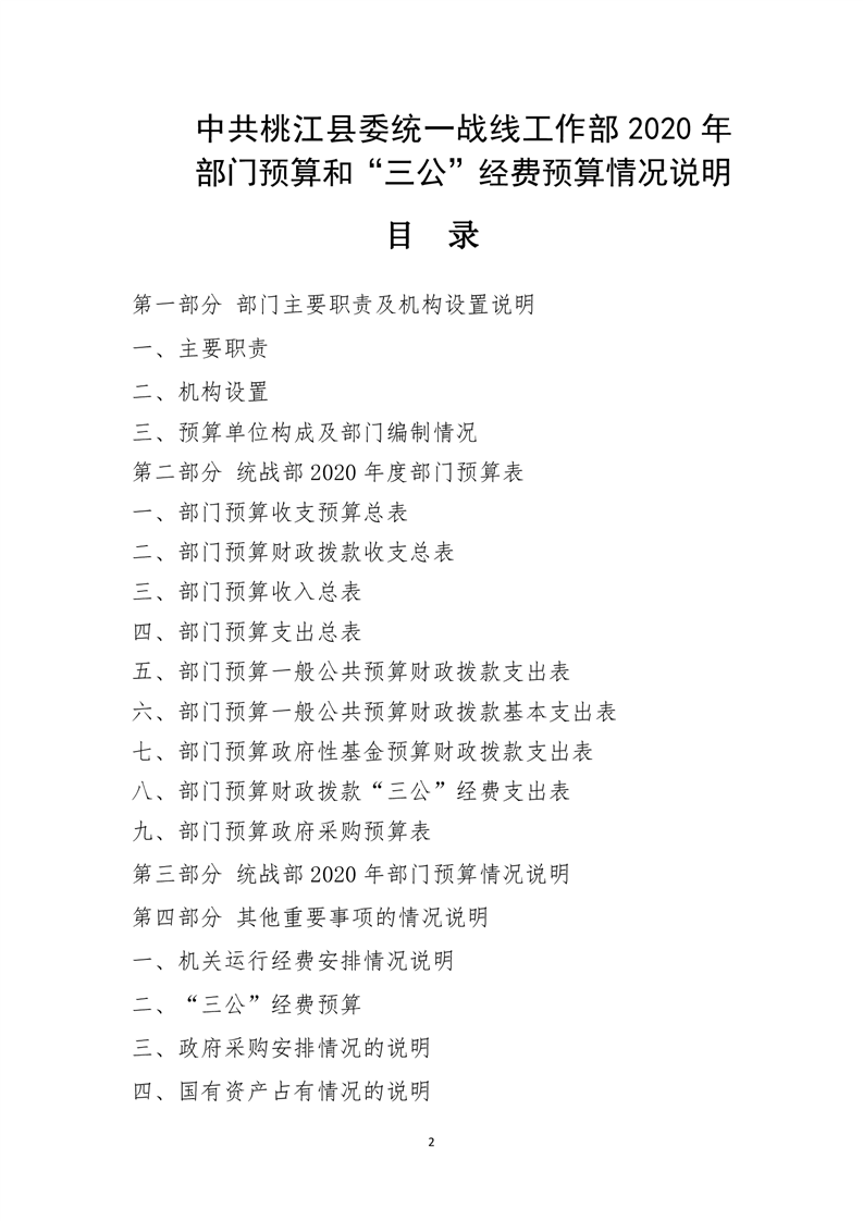 桃江县委统战部2020年部门预算、“三公经费”公开