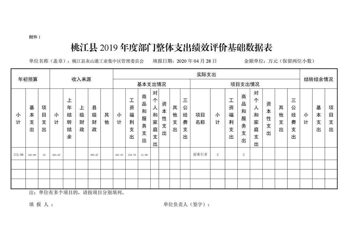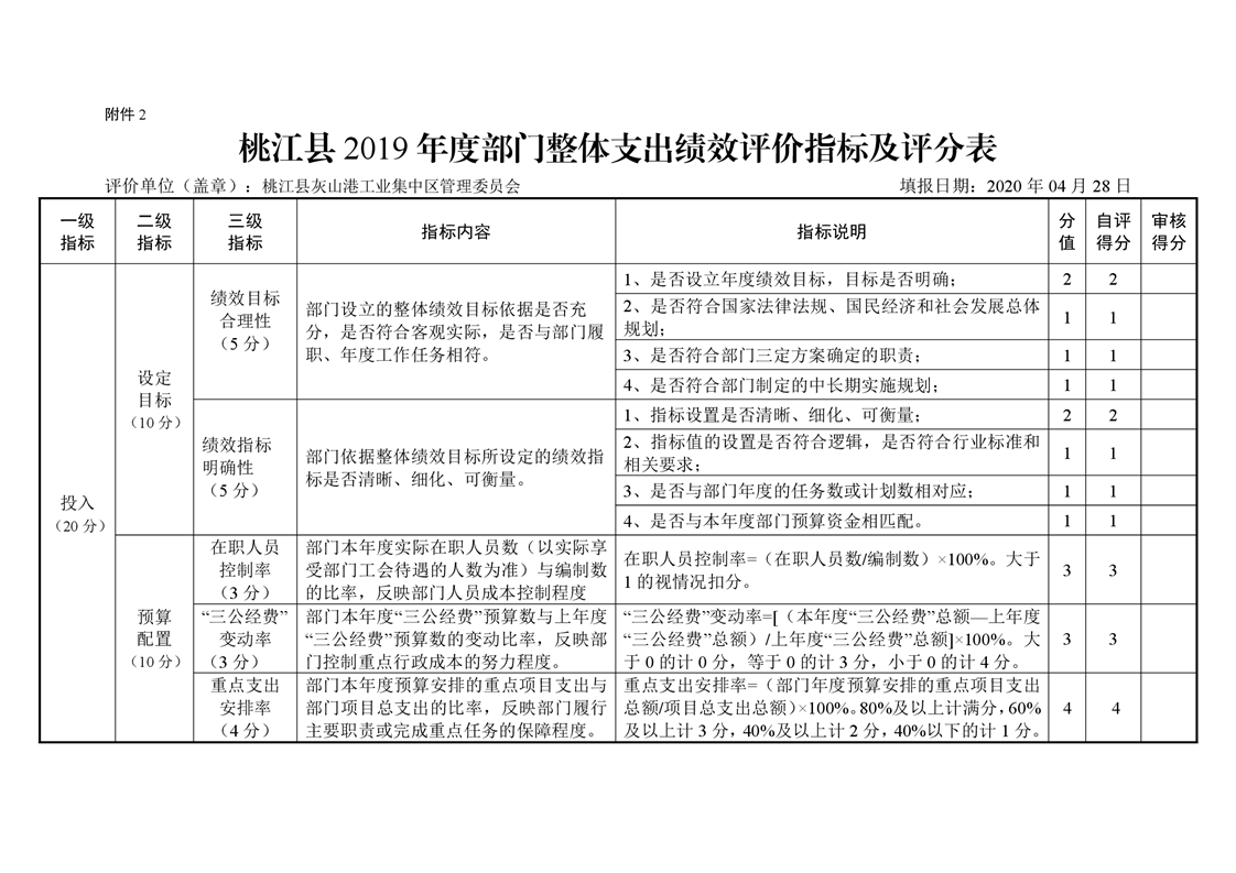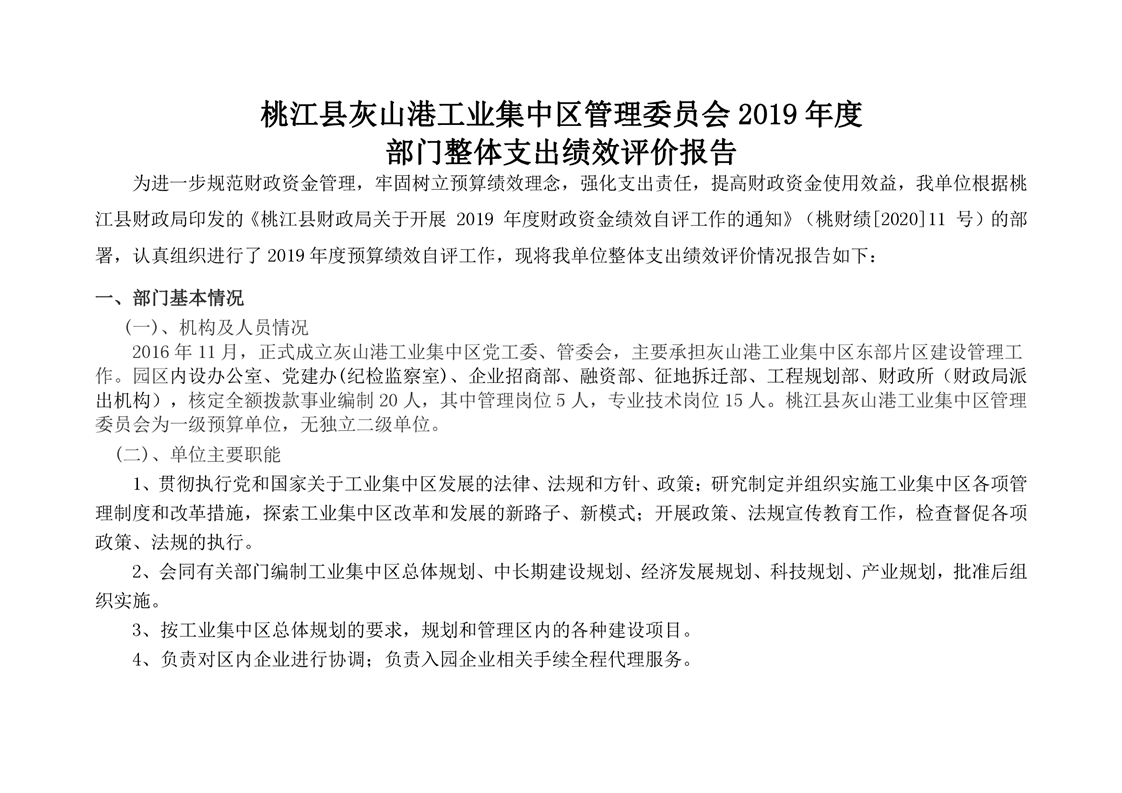 桃江县灰山港工业集中区管理委员会2019 年度部门整体支出绩效评价报告